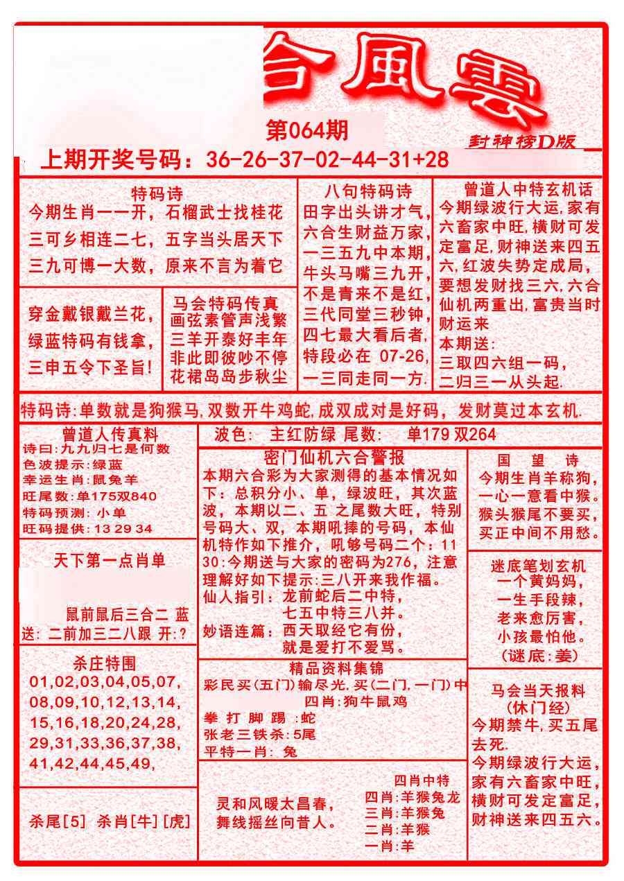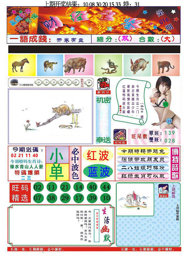 。所发布的资料属科学数理分析-开奖,走势,资料,图说,总结,均是精品资料。值得您长期跟踪。 |