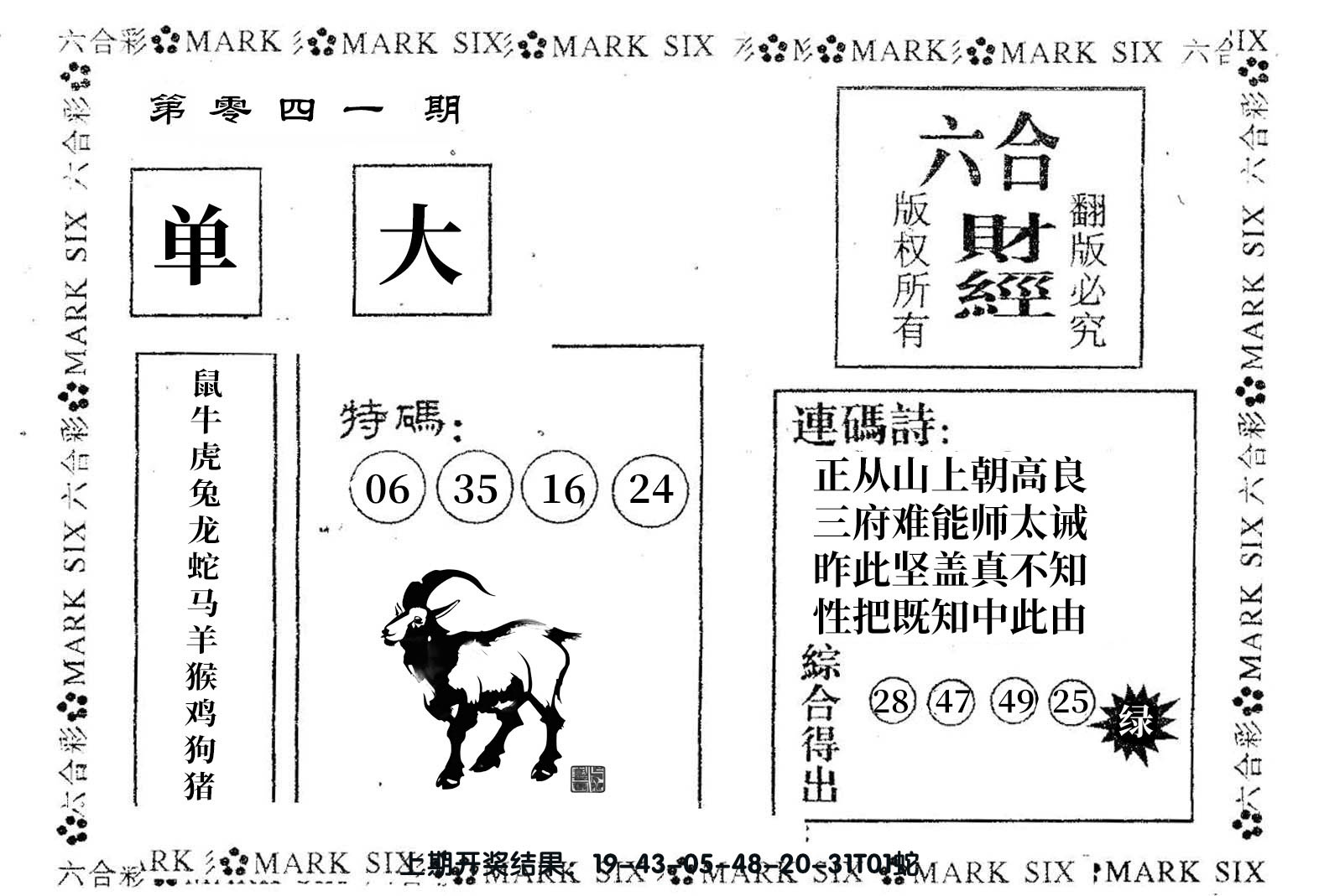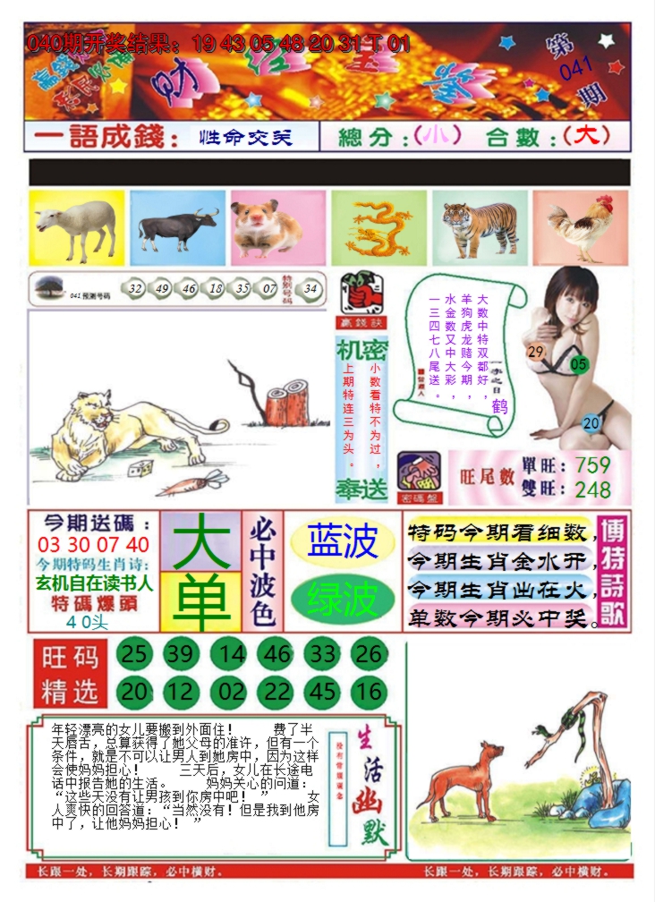 【六合堂图库】合数单双: