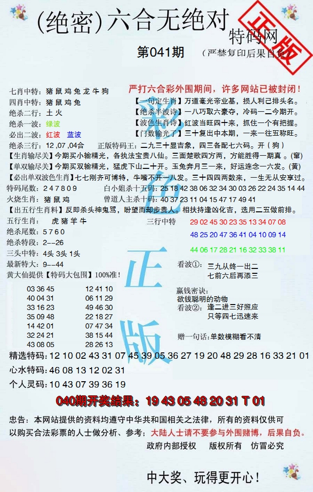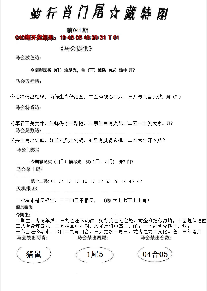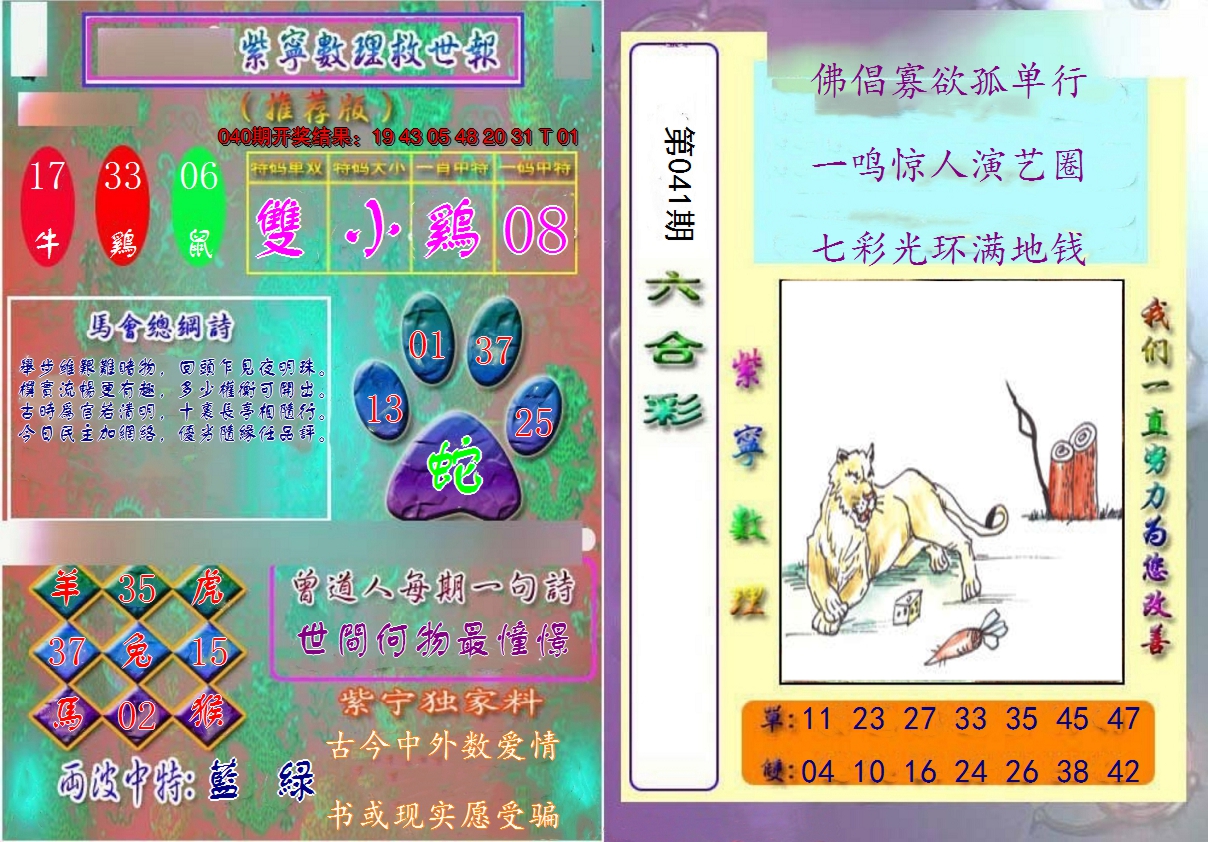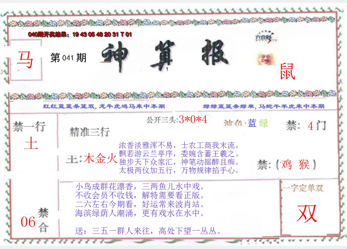 01,02,09,10,23,24,31,32,39,40 鼠 冲 马 牛 冲 羊