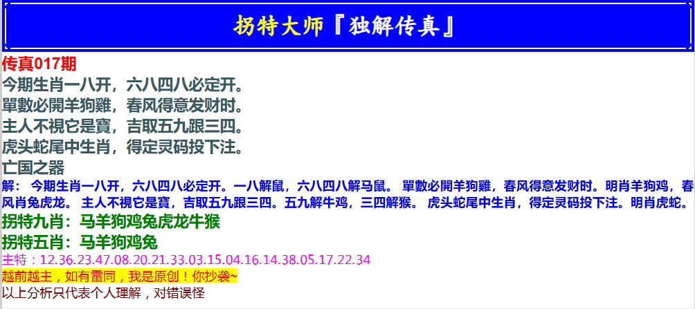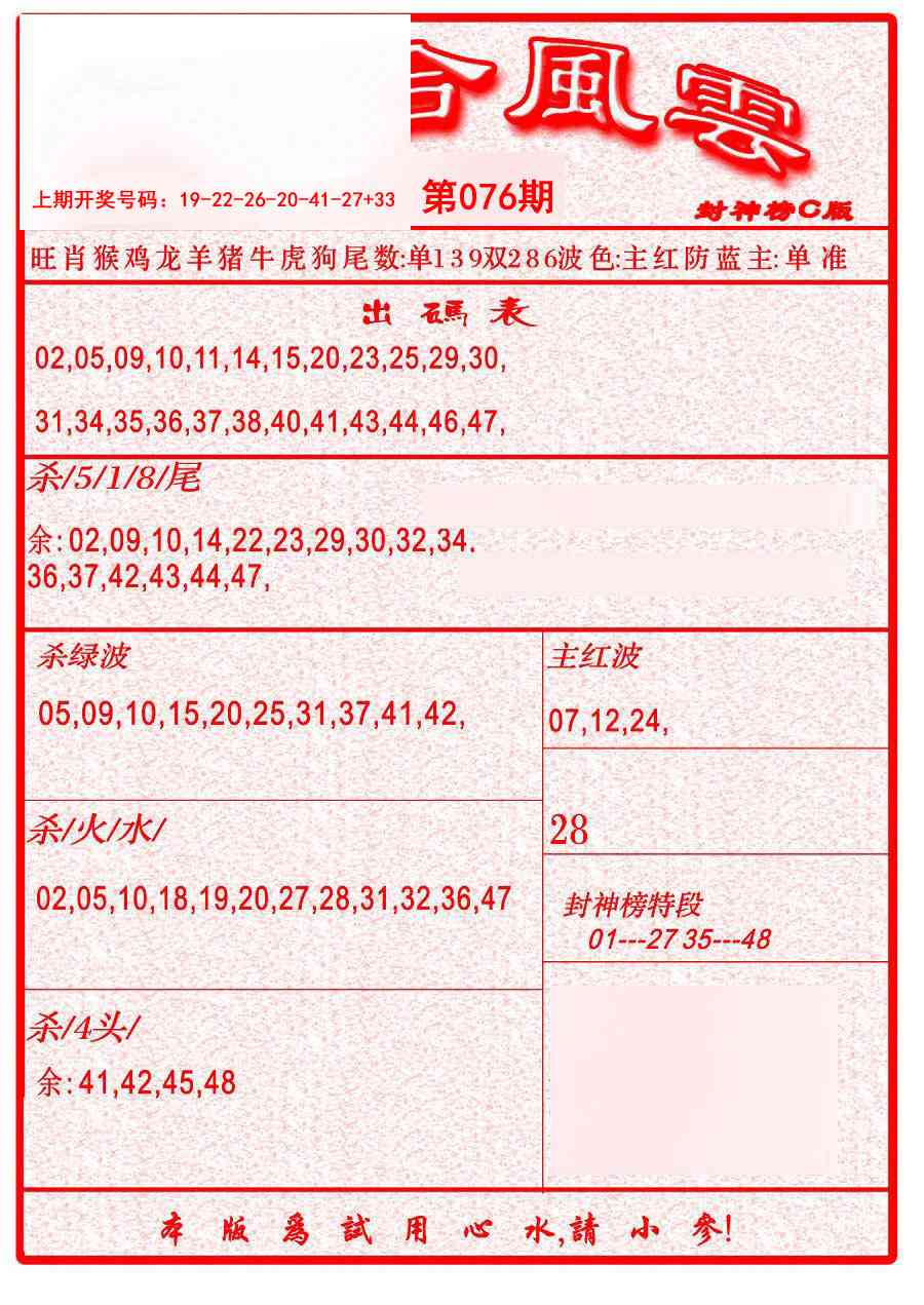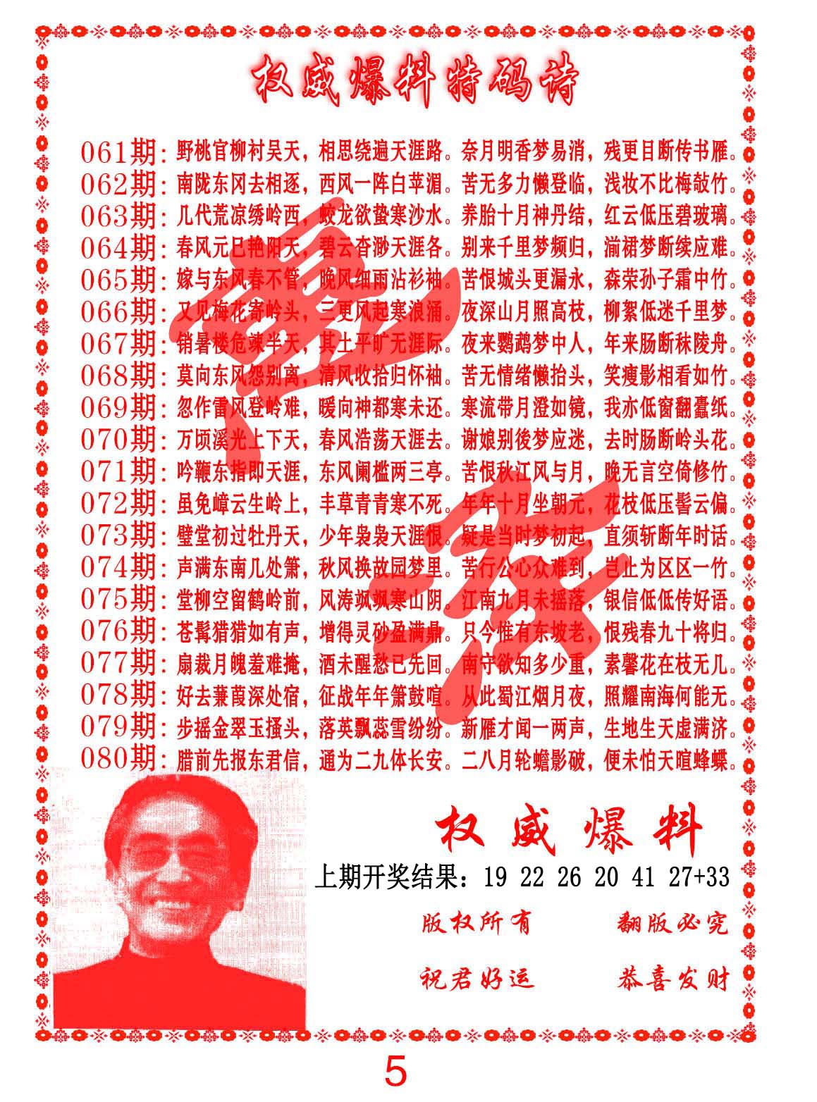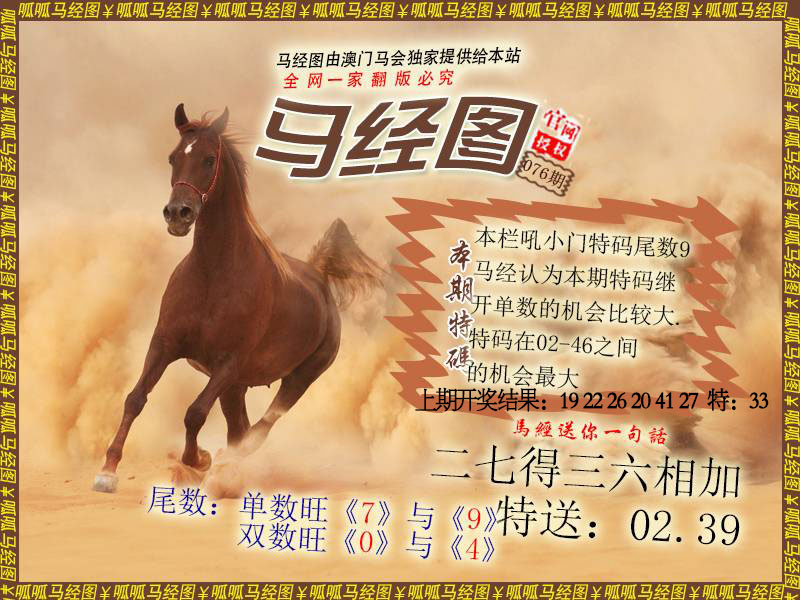 。所发布的资料属科学数理分析-开奖,走势,资料,图说,总结,均是精品资料。值得您长期跟踪。 |