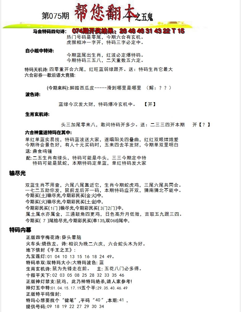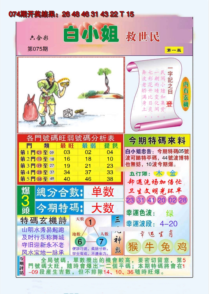 【六合堂图库】合数单双: